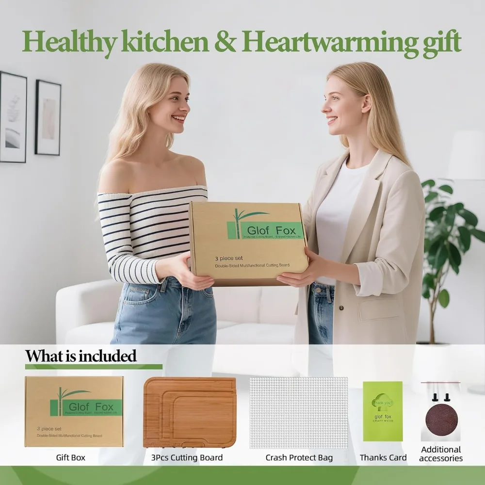 Upgrade your kitchen with this durable 3-piece bamboo cutting board set designed for cutting, serving, and style.